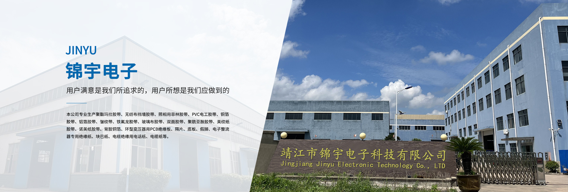 靖江市錦宇電子科技有限公司地處—靖江市。與上海、南京隔江相望,滬寧高速和京滬高速將蘇錫常及京廣連為一體,東依開放港口城市南通,西連新長(zhǎng)鐵路,南臨長(zhǎng)江萬噸船用碼頭,北接寧通一級(jí)高速公路,水陸交通便捷,經(jīng)營(yíng)環(huán)境優(yōu)良。 本公司專業(yè)生產(chǎn)聚酯瑪拉膠帶、無紡布擋墻膠帶、照相用菲林膠帶、PVC電工膠帶、銅箔膠帶、鋁箔膠帶、皺紋帶、鐵氟龍膠帶、玻璃布膠帶、雙面膠帶、聚酰亞胺膠帶、美紋紙膠帶、諾美紙膠帶、背膠銅箔、環(huán)型變壓器用PCB絕緣板、隔片、底板、假腳、電子整流器專用絕緣紙、塊巴紙、電纜絕緣用電話紙、電纜紙等。 公司依靠先進(jìn)的科學(xué)管理,精良的生產(chǎn)裝備,合理的工藝設(shè)計(jì),完善的檢測(cè)設(shè)備,以著“科技創(chuàng)新、質(zhì)量為本、誠信服務(wù)”的信念。并嚴(yán)格貫徹ISO9001國(guó)際質(zhì)量體系的程序和規(guī)格,為廣大用戶提供優(yōu)質(zhì)的產(chǎn)品與滿意的服務(wù)。 多年來,公司本著“用戶滿意是我們所追求的,用戶所想是我們應(yīng)做到的”的經(jīng)營(yíng)理念;“質(zhì)量保障,價(jià)格合理,服務(wù)誠信”的企業(yè)宗旨。熱忱歡迎海內(nèi)外各界人士、朋友前來洽談、合作,攜手共創(chuàng)輝煌的明天。